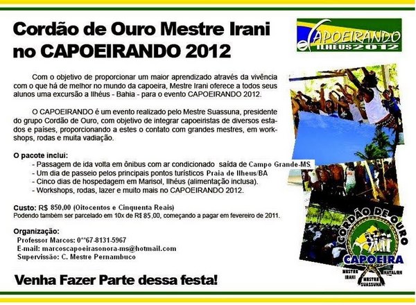 A Associação de Capoeira Cordão de Ouro/MS Promove.